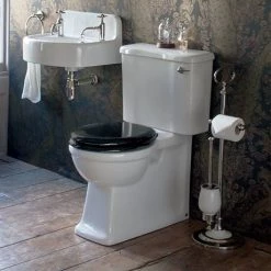 This luxury traditonal close coupled toilet operates with an advanced flush mechanism, simply push the lever down for a full 6 litre flush and lift for a short 3 litre flush. Old style mechanisms relied on you pushing the lever down hard to mechanically lift the water in the syphon to create the flush. You only need a light touch to operate this advanced flush mechanism.