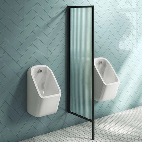 (1) Arezzo Fluted Glass Matt Black Framed Urinal Partition