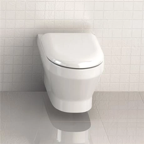 A stylish designer wall hung toilet with a soft close toilet from the Curve collection by Britton Bathrooms, bring a touch of style and luxury to your bathroom with this quality wall hung toilet. All Britton Bathrooms pottery is covered by a 25 Year Guarantee. All of Brittons WC’s have Nanoglaze in the bowl. Nanoglaze is a coating that reduces microscopic pores in the ceramic surface – making the ceramic smoother – as a result less waste ‘sticks’ to the ceramic – making cleaning far easier. Use in conjunction with our range of concealed cistern wall hung frames (sold separately).