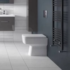 The Brooklyn Squared Back to Wall Toilet Pan with Soft Close Top Fix Seat is designed for a sleek and subtle bathroom experience thanks to its modest projection of just 520mm from the wall. The gloss white finish is easy to clean and the pan’s angular square shape will complement a range of different bathroom interiors – whatever your chosen style. The unit’s designed for use with a concealed cistern – try Nuie’s Front + Top Access Dual Flush for a clutter free look.