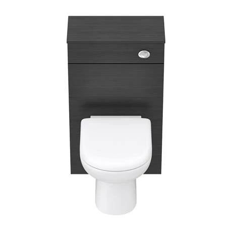 Bring a striking look to your bathroom with the Brooklyn WC Unit in Black. At 502mm wide, it’s appropriate for a compact space and helps to reduce your water consumption with the half flush option. The textured wood effect and eye catching finish create a modern look that’s complemented by the sparkling chrome flush button. This back to wall toilet unit uses a concealed cistern to hide messy pipework, bringing an uncluttered look to your space. Why not pair this Brooklyn toilet unit with the Alaska Back to Wall Toilet Pan?