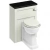 This beautifully designed back to wall unit and regal comfort height pan is from Burlington’s fitted furniture range. Create a seamless look by combining base and wall units and stunning Minerva worktops to any configuration to give the illusion of space and maximise functionality in your bathroom.Â