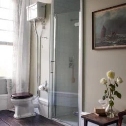 A traditional gloss white concealed bottom outlet low level WC with a lever cistern. Ideal for bathrooms where the waste outlet exits the floor. This WC features Nanoglaze which is a unique coating used within the production process to create an ultra-smooth ceramic surface making them exceptionally easy to keep clean. All Burlington WC fittings are WRAS approved and factory set at 3L and 6L flush. They can be adjusted on site to flush at 2½L and 4½L. Burlington offer a 25 year guarantee on all their sanitaryware.