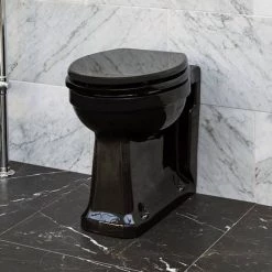 The gloss black Burlington Jet Back To Wall Pan is both timeless and versatile, its monochromatic style will continue to be desirable for years to come. Jet ceramic bathroom products are made in the UK and is to the same high fired quality as Burlington’s white ceramic with a 25 year guarantee on ceramics.