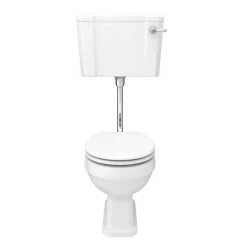 Opting for a classic look for your bathroom? Look no further than our Chatsworth Low Level Traditional Toilet. This design has a projection of 410mm and features a handle flush with an exposed connecting pipe, creating that traditional toilet style. It is manufactured from durable gloss white china with brushed chrome soft close hinges that are quick release for easy cleaning. The seat’s handy soft close function stops any unpleasant slamming noises.