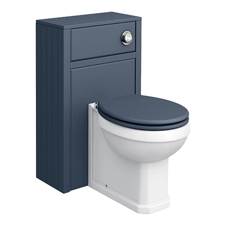 The Chatsworth traditional 500mm wide back to wall toilet unit, Victorian inspired design with a modern twist. The Chatsworth range of charming bathroom furniture features classic styling with a satin blue finish and tongue-and-groove side panelling. Manufactured to a high standard, the inspired Chatsworth range of luxury furniture with it’s clean minimalist design and muted palette blends beautifully with any style of bathroom.