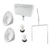 - Supplied with white plastic fixed dome top waste, urinal brackets, petcock and automatic syphon