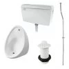 - Supplied with white plastic fixed dome top waste, urinal brackets, petcock and automatic syphon
