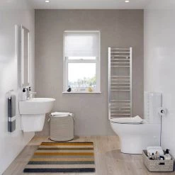 The Kai sanitary range from Crosswater features designs for every modern bathroom. This compact close coupled toilet combines aesthetics and function offering a level of design that combines effortlessly with every bathroom style. The toilet comes complete with a luxury soft closing seat with quick release hinges for easy cleaning and includes floor fittings.