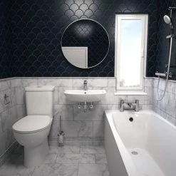 This Grohe Bau Rimless Close Coupled Toilet is an elegant, hygiene friendly choice for your modern bathroom. The 600mm projecting close coupled toilet boasts rimless technology, making it easy to clean and leaving no hidden nooks where germs can linger. Its dual flush cistern reduces water consumption to save you money, activated by a gleaming chrome finished button. The soft close toilet seat prevents slamming, while quick release hinges mean you can take the seat off easily to wipe away bacteria. This toilet is made from durable ceramic for a clean look that will last for years to come.