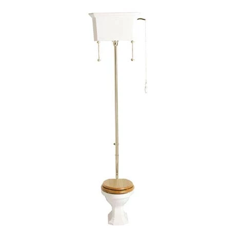 The beautiful structured lines and stunning detailing of the Granley brings a touch of elegance to any bathroom. This High-level WC and Gold Flush Pack is constructed from high grade vitreous china and vintage gold plated brass ensuring a quality finish and long lasting durability. Includes decorative ornate brackets, pull chain and vintage gold high level flush pipe kit. For peace of mind Heritage offer a lifetime guarantee on all their sanitary ware.