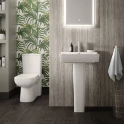 The stylish Arlo contemporary back to wall close coupled toilet comes complete with a top fixing soft-close toilet seat. Features a dual flush cistern for improved water consumption. Ideal for modern bathrooms, its back to wall design means all pipework is hidden from view.
