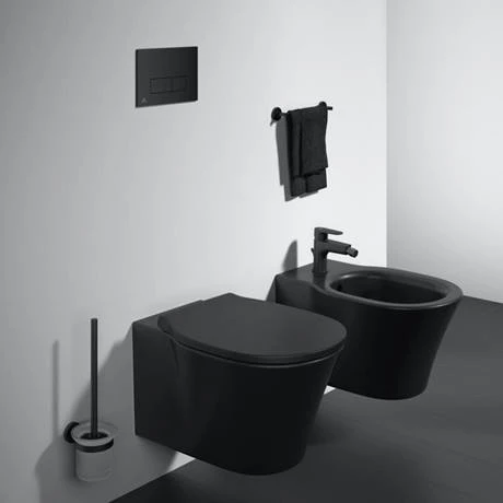 The Connect Air Silk Black wall hung bidet will make a design statement in the bathroom with it’s contemporary elegance. Manufactured from high quality vitreous china, the bidet features a single tap hole and integrated overflow.