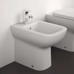 Ideal Standard i.life bathroom collection offers simplicity with pure lines shaping a serene bathroom interior for the everyday. This back to wall bidet is the complement to the floorstanding toilet. Made from high grade gloss white ceramic, it features a single tap hole and built in overflow.