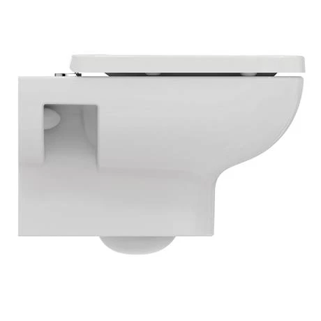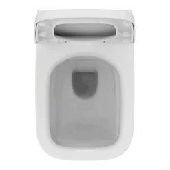 Ideal Standard i.life bathroom collection offers simplicity with pure lines shaping a serene bathroom interior for the everyday. RimLS+ delivers a smooth hygienic cleaning experience, with a strong flush and no overhanging rim, the entire bowl is cleaned more thoroughly with every flush. Manufactured from high quality ceramic, this wall hung toilet also comes with a quality soft close seat.