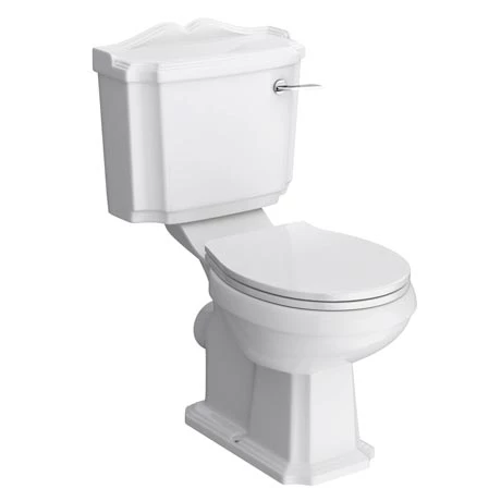 The Oxford Close Coupled Traditional Toilet with 760mm projection from the wall is a classic choice that harmonises perfectly with period features. The traditional style might give the impression of an antique, but high quality modern manufacturing standards mean it’s durable, reliable and suitable for contemporary use. The gloss white finish creates a smooth surface that’s easy to clean, with a silver chromed flush lever for a long lasting gleam. Complete with cistern fittings, toilet seat and a handy five year guarantee, this close coupled toilet offers everything you need to evoke vintage luxury in your bathroom or cloakroom.