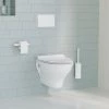 The compact RAK Tonique Wall Hung Rimless Pan with Quick Release Soft Close Seat boasts cutting edge technology to improve bathroom hygiene. As there’s no hidden rim for germs to lurk under, the entire surface of the wall hung toilet can be cleaned easily, preventing the build up of bacteria and limescale. Vitreous china means it’s stain resistant and will withstand regular use, while the white finish helps it fit in with other bathroom fixtures. Plus, the soft close toilet seat and lid will make slamming a thing of the past.