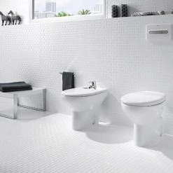 A classic modern floor standing bidet from the Roca Laura collection, features elegant and functional curves. Manufactured from vitreous china with a white gloss finish. This Bidet comes with a quality antibacterial bidet cover and a 25 year guarantee.