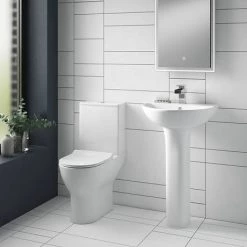 The Toreno Round Rimless Close Coupled Toilet is a practical space saving solution with a fresh contemporary look. The pan projects just 635mm from the wall, so it fits even compact bathrooms and en suites. For improved hygiene, the rimless design provides a much more efficient flush action – this means less harmful bacteria and it’s even easier to clean too. The slim close coupled toilet has the added advantage of concealing any unsightly pipework. It boasts a soft close toilet seat which assures you a peaceful bathroom and a dual flush cistern that helps reduce your water consumption.