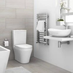Choose the Toronto Close Coupled Toilet to give your bathroom a sleek, modern feel. This back to wall toilet with a 655mm projection hides all pipework from view, creating a clutter free look. Its handy dual flush cistern also means you can flush with either six or four litres for reduced water consumption – great for the eco conscious. An integrated soft close toilet seat makes for a peaceful space with no sudden noises and minimises wear and tear, too. Going for a complete renovation? Consider teaming this loo with the coordinating Toronto Basin with Full Pedestal.