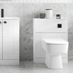 The Venice Abstract Complete 500mm wide toilet unit features an eye-catching geometric design that will create a style statement in your bathroom. Manufactured from quality materials, this WC unit comes fully assembled and is finished in white satin. Supplied with a quality square WC pan including a soft closing seat and luxury matt black flush concealed cistern.