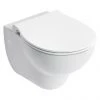Versatile and inexpensive, the O.novo range from Villeroy and Boch offers the full spectrum of modern bathroom designs. This wall hung toilet is perfect for optimising floor space in your bathroom. The sanitary ceramic is especially long-lasting and easy to clean and is extremely resistant to scratches, knocks and impacts. Includes a soft close seat with quick release.