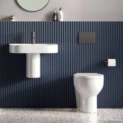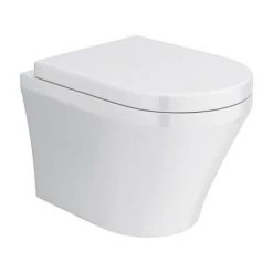 Britton Shoreditch Round Close Coupled Rimless Toilet with Matt Black Flush Button + Soft Close Seat
